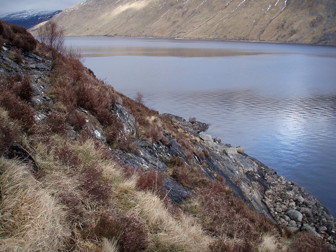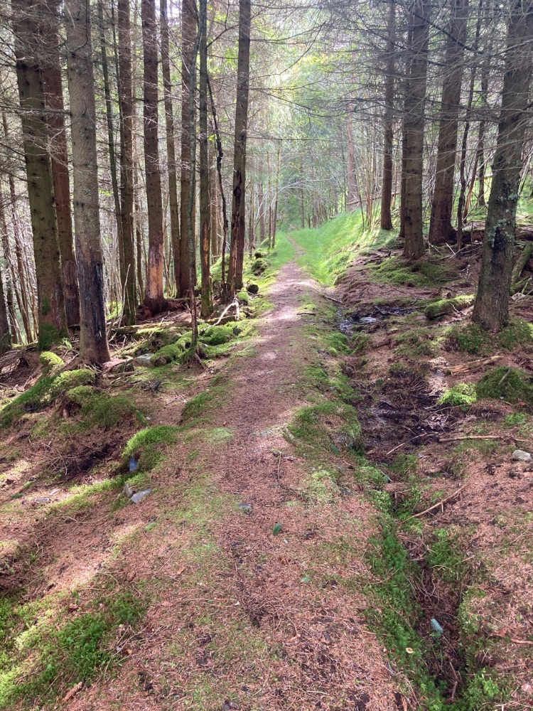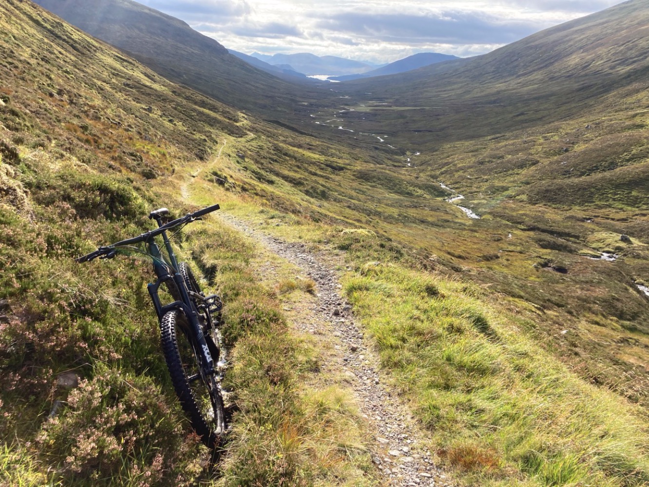 This route goes clockwise and avoids Bealach Breabag by starting with a ride along the shore of Loch Ericht with only a short section of hike-a-bike round An Dun (the headland before Ben Alder Cottage).